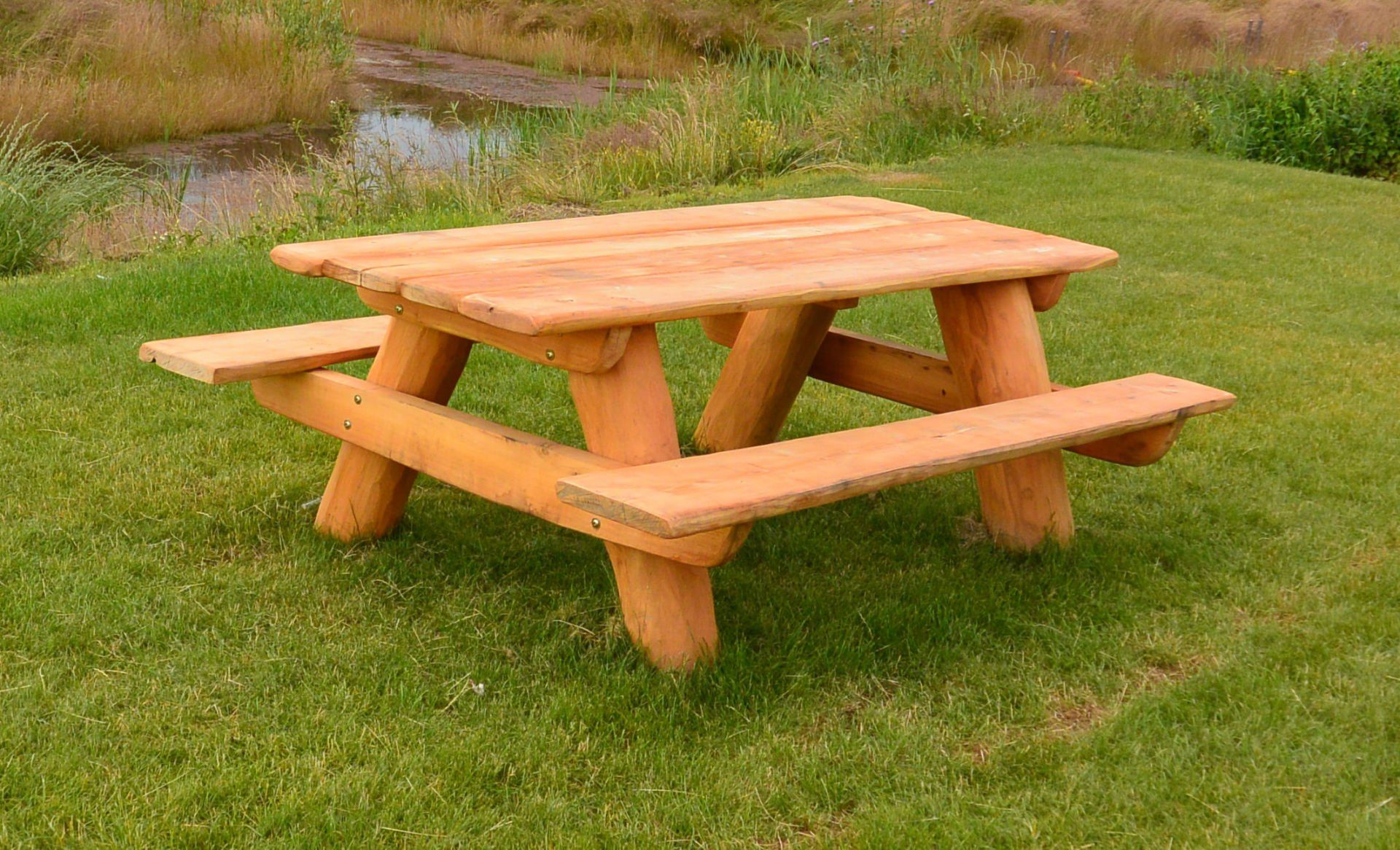 Volledig houten picknickset van Robinia hout, uit 1 stuk.